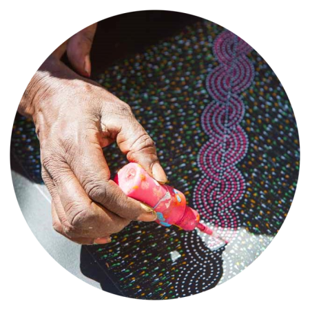 Our vibrant and dynamic artists are from the Utopia region; a large remote area of Central Australia which, until recently, had no government funded art centre. As a result of their pioneering efforts, they have one of the strongest and richest art histories.