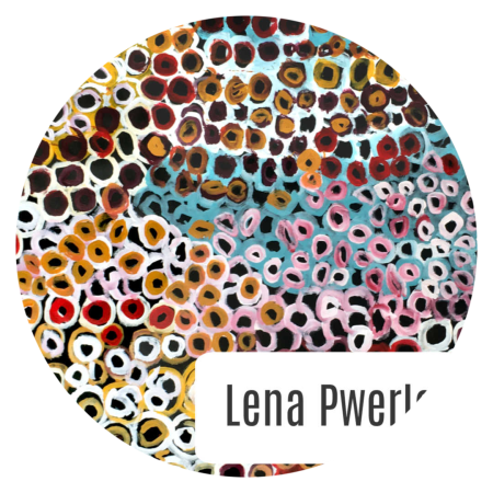 Now Open. Lena celebrates our annual exhibition of paintings by Utopia elder Lena Pwerle.