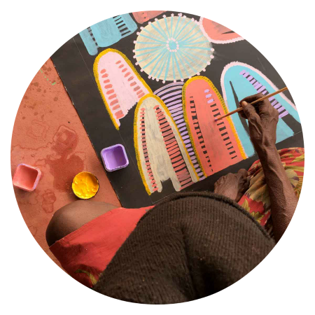 Our vibrant and dynamic artists are from the Utopia region; a large remote area of Central Australia which, until recently, had no government funded art centre. As a result of their pioneering efforts, they have one of the strongest and richest art histories.