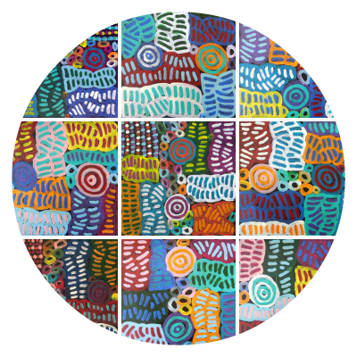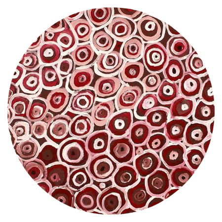 Our vibrant and dynamic artists are from the Utopia region; a large remote area of Central Australia which, until recently, had no government funded art centre. As a result of their pioneering efforts, they have one of the strongest and richest art histories.