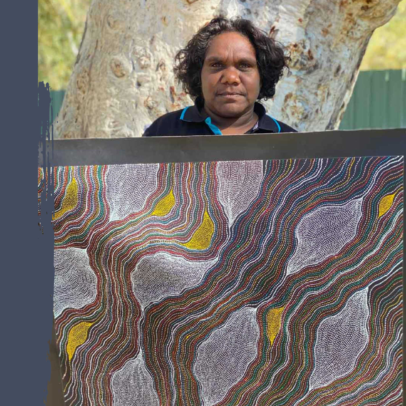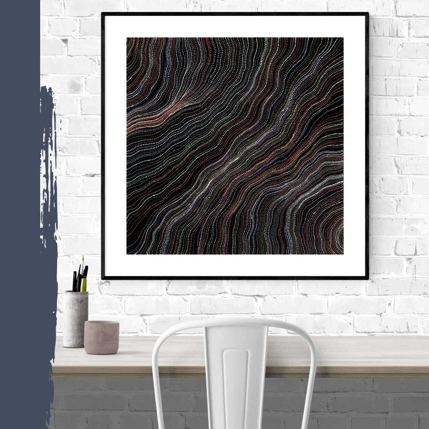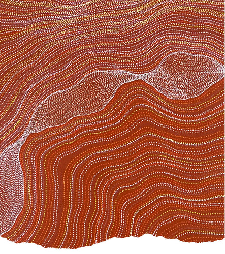 Delvine's country is Alhalkere which lies in the heart of Central Australia's Utopia region. The intricate strings of dots in her paintings symbolically map her country including river beds, yam root systems, sandhills and travelling lines.