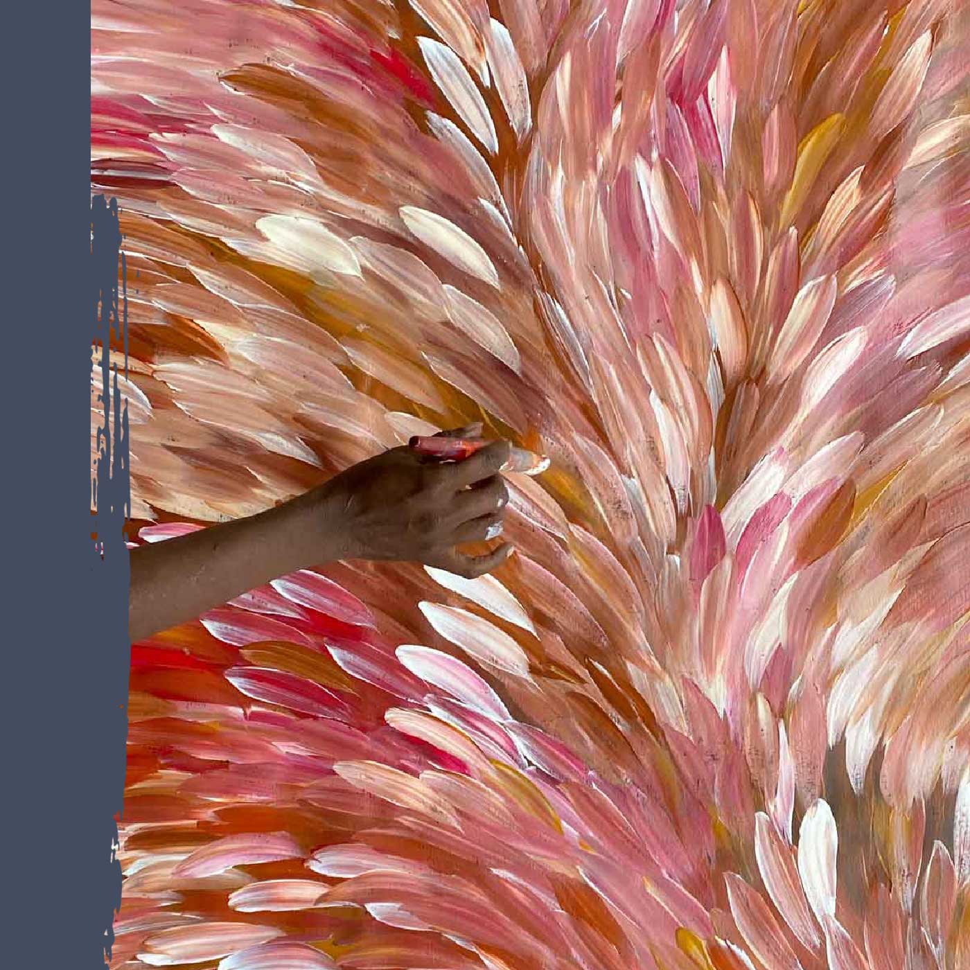 Our vibrant and dynamic artists are from the Utopia region; a large remote area of Central Australia which, until recently, had no government funded art centre. As a result of their pioneering efforts, they have one of the strongest and richest art histories.