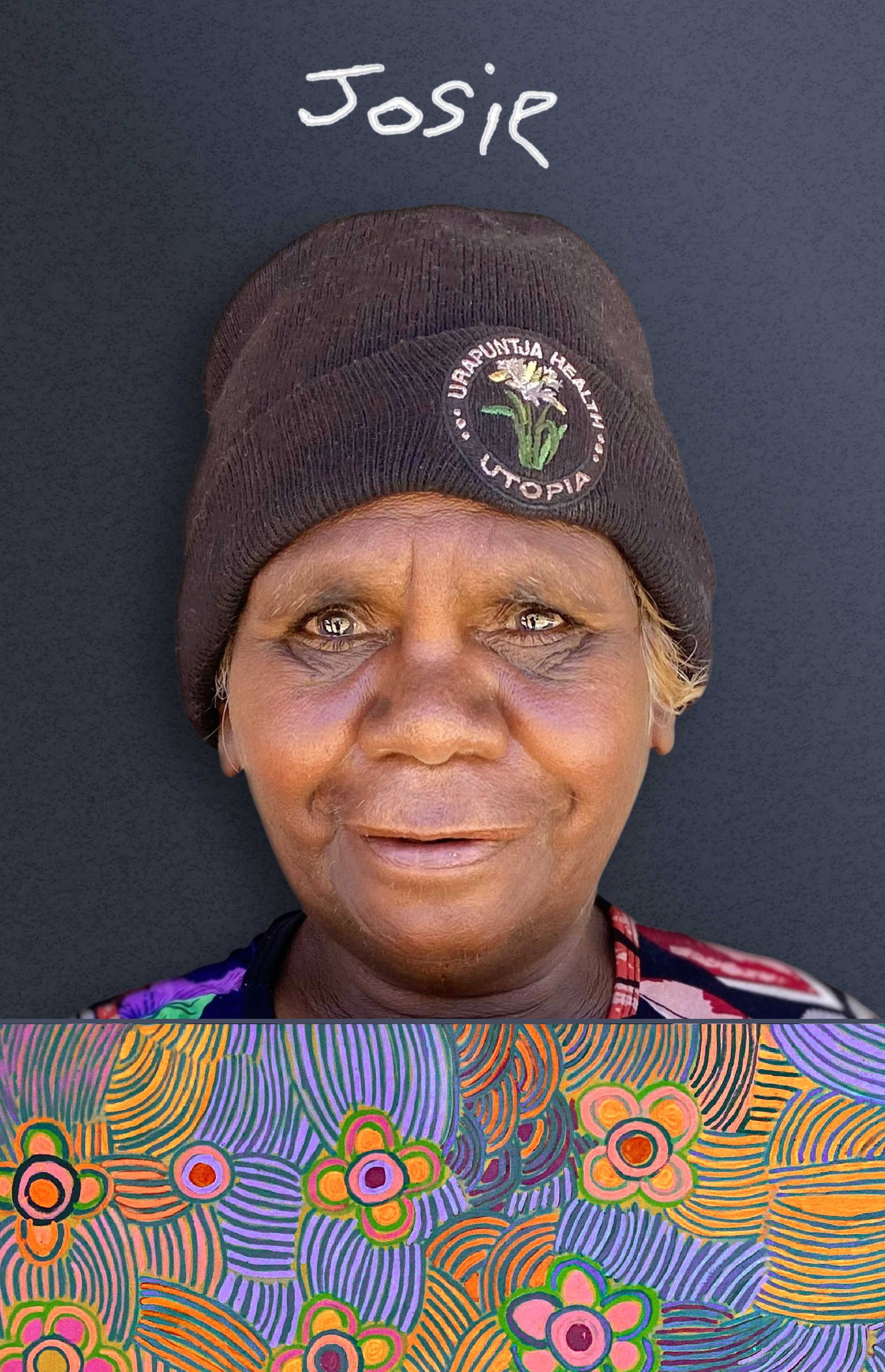 Josie is a vibrant, dynamic, innovative Australian artist, responsible for some of the finest dot paintings to come from Utopia, as well as colourful paintings and carvings and illustrations of the things she loves.