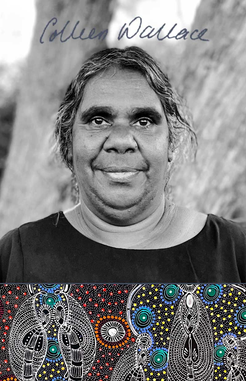 Colleen paints Dreamtime Sisters; ancestral spirits who roam the country performing sacred song and dance. They look after Arnumarra country and guide its people.