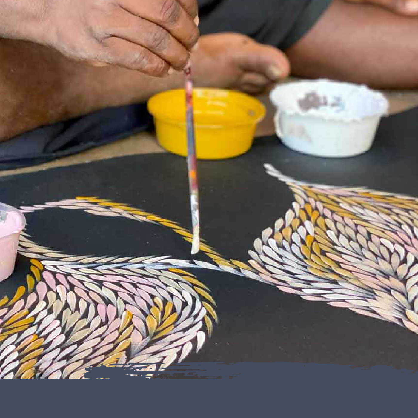 When Gloria first started painting Leaves, it was in the mid 90’s and, at first, unintentional. Utopia artists, being mostly women, had a freedom of style to paint their Dreamings from the movement's inception, and one day, while painting her Dreaming with bold brush strokes, Gloria realised it looked like leaves laying on the ground.